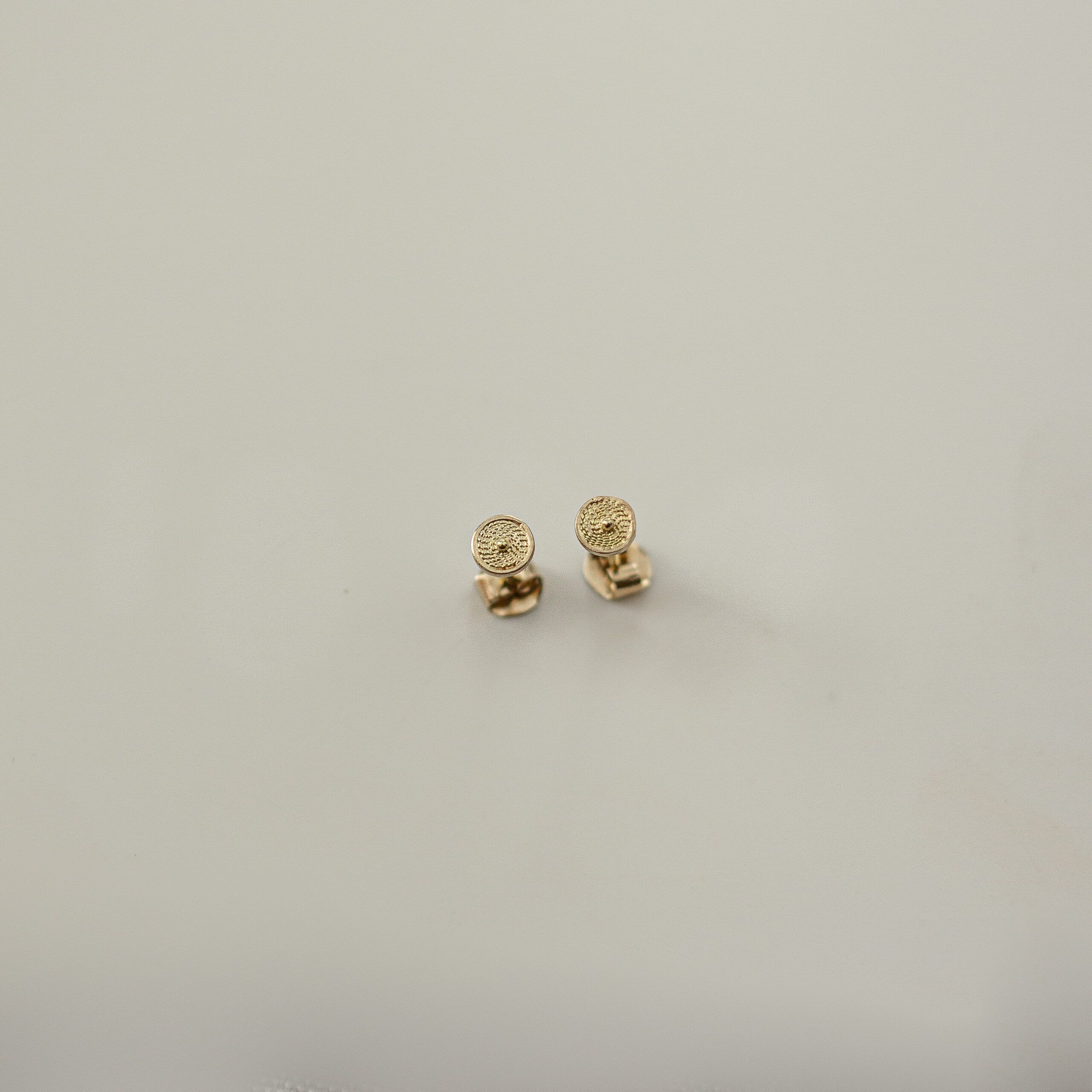 Brincos Botão Capim Dourado de Pino Confeccionado Artesanalmente em Filigrana Ouro 18K.