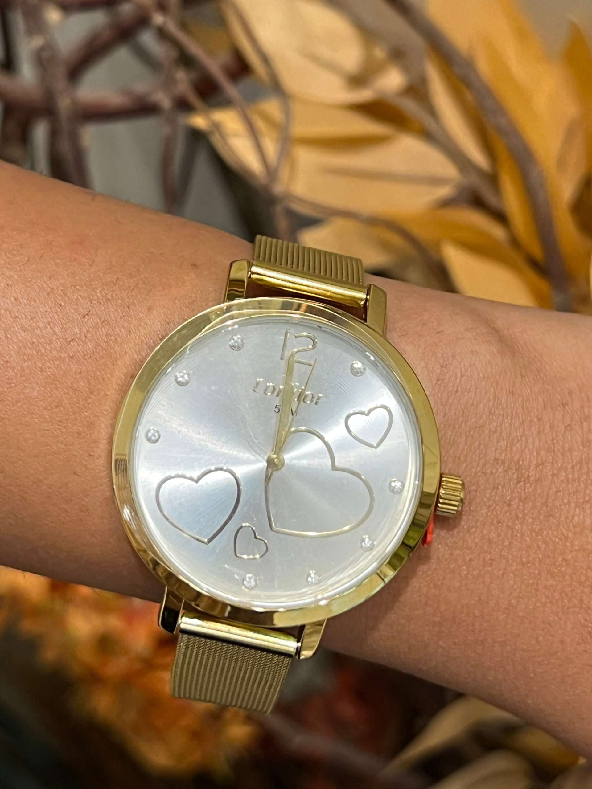 Kit de relógio feminino Condor dourado com acessórios delicados