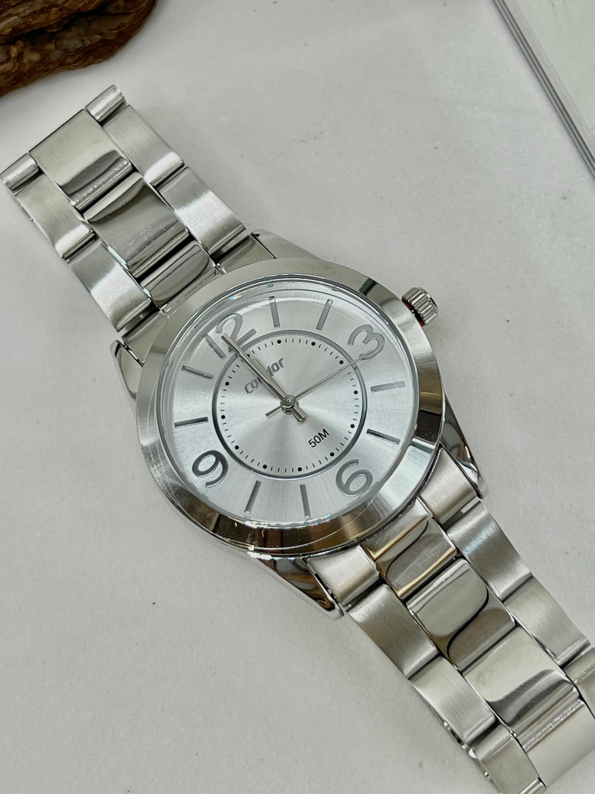 O relógio Condor feminino Dia a Dia prata é a escolha ideal para quem busca um acessório versátil, moderno e fácil de combinar com qualquer estilo.