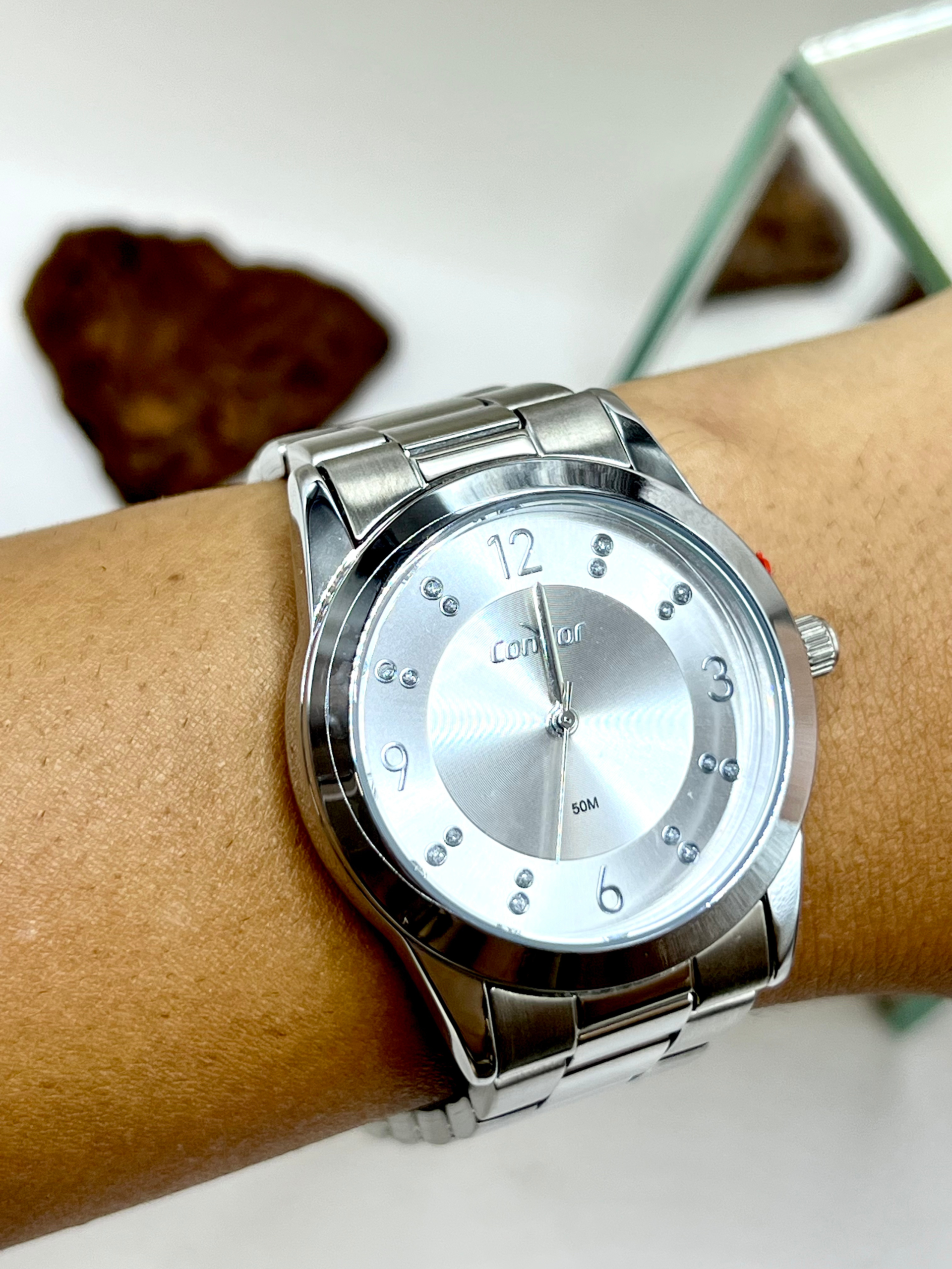 O relógio Condor Dia a Dia prata é a escolha ideal para mulheres que buscam um acessório clássico, funcional e com brilho discreto para todas as ocasiões.