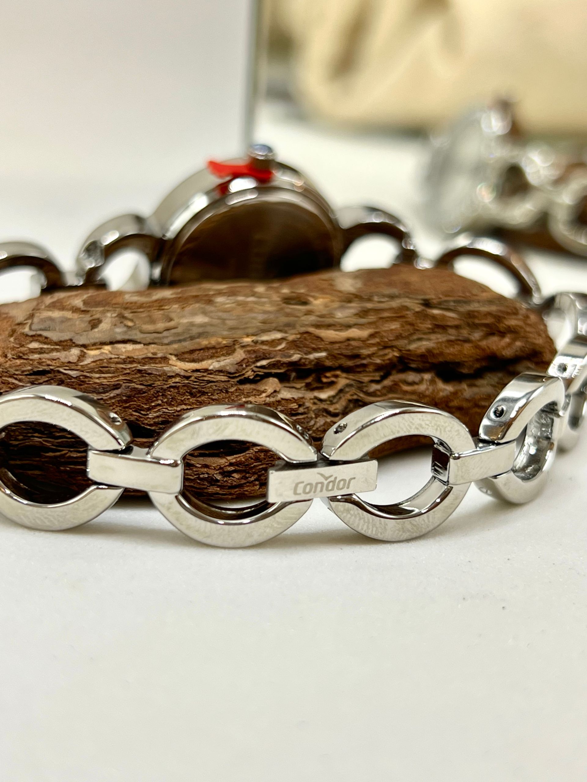O relógio Condor feminino bracelete prata é a escolha perfeita para quem busca um acessório elegante, delicado e cheio de brilho para completar qualquer produção.