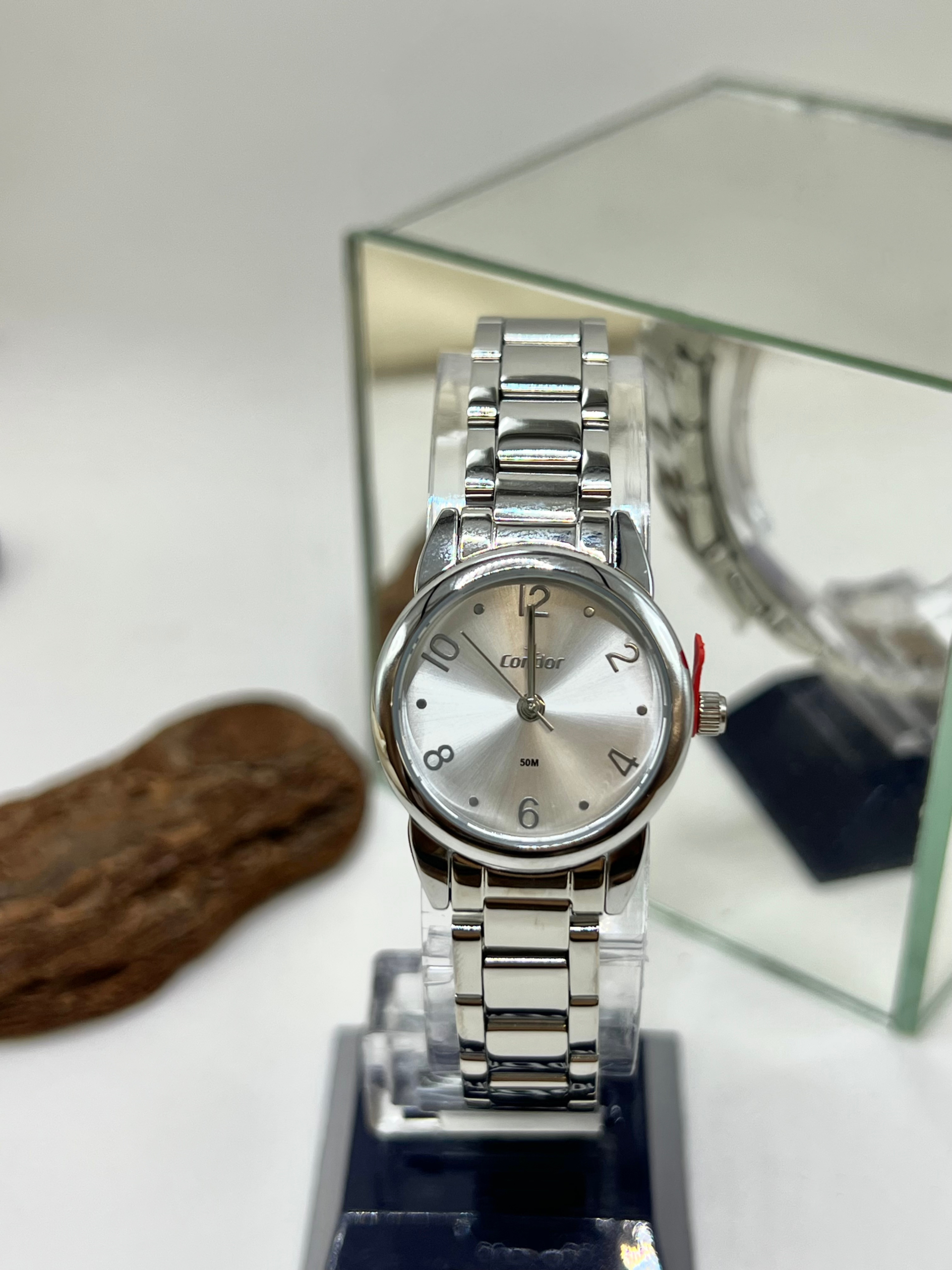 O relógio Condor feminino mini prata é um modelo compacto, clássico e versátil, ideal para mulheres que preferem um acessório discreto para o dia a dia. Com design tradicional e acabamento prateado, ele combina facilmente com produções casuais ou sociais.