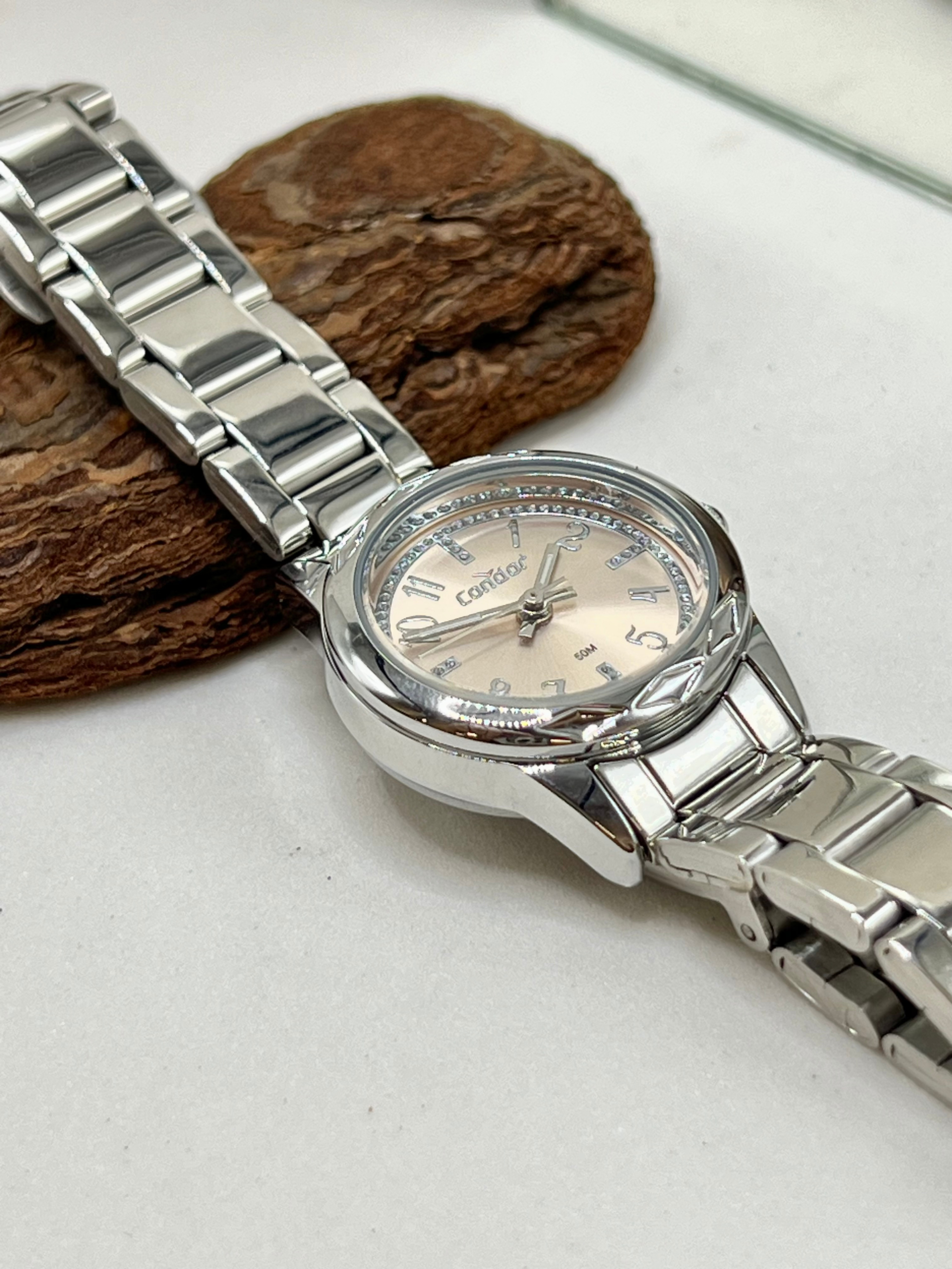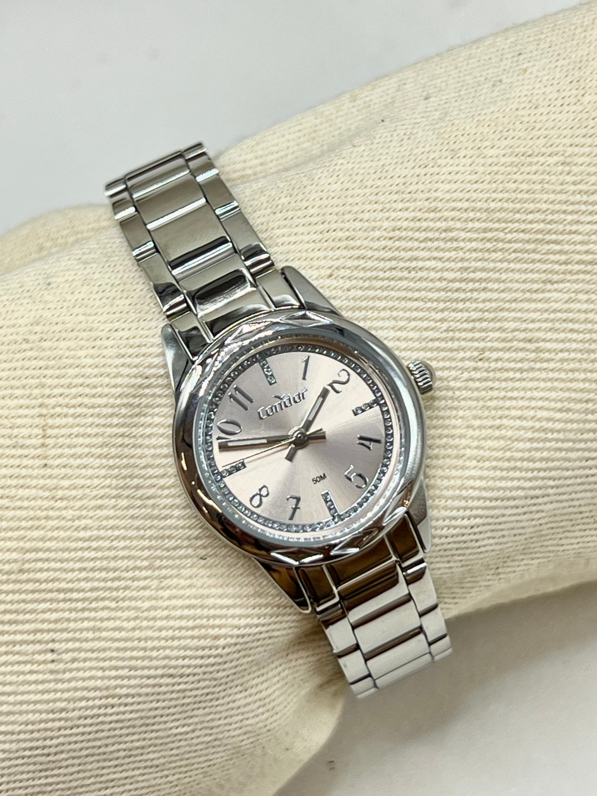 O relógio Condor feminino mini prata é perfeito para quem deseja um acessório compacto, feminino e com um toque moderno de brilho.