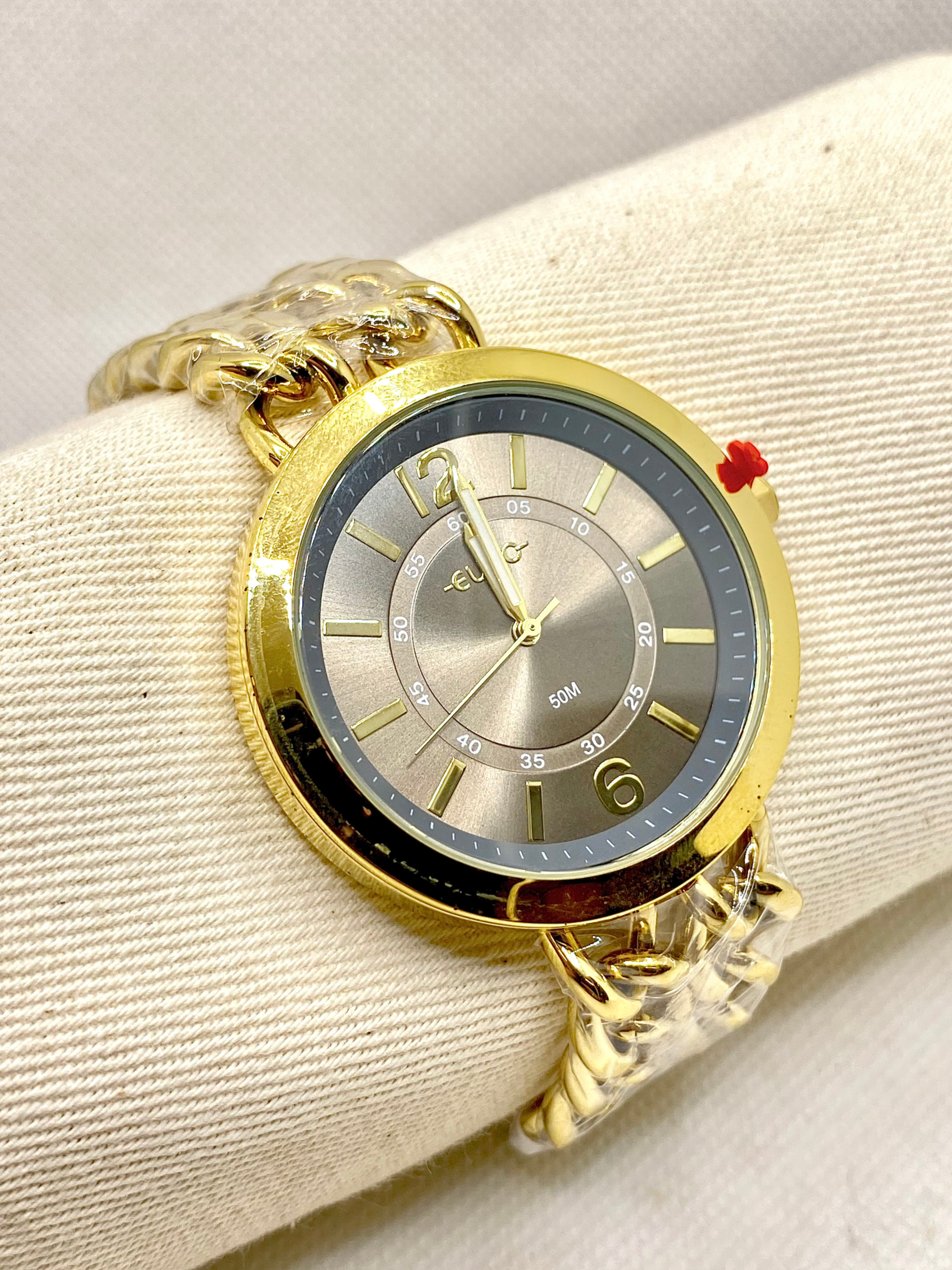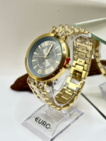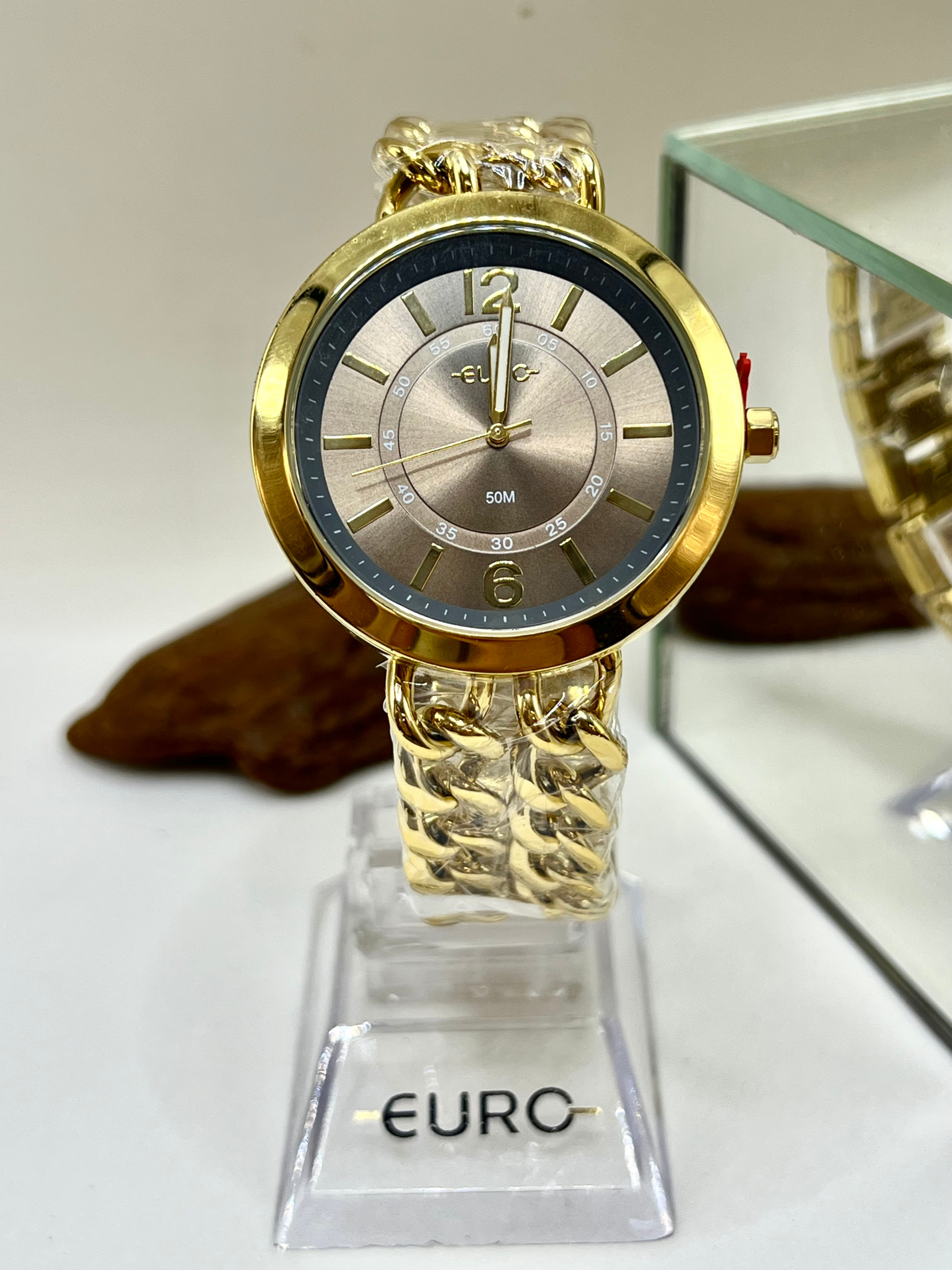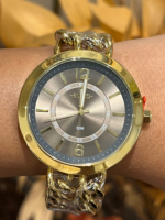 O relógio Euro dourado Chains combina design contemporâneo, acabamento sofisticado e pulseira em estilo correntaria, ideal para quem busca um acessório de destaque e personalidade.
