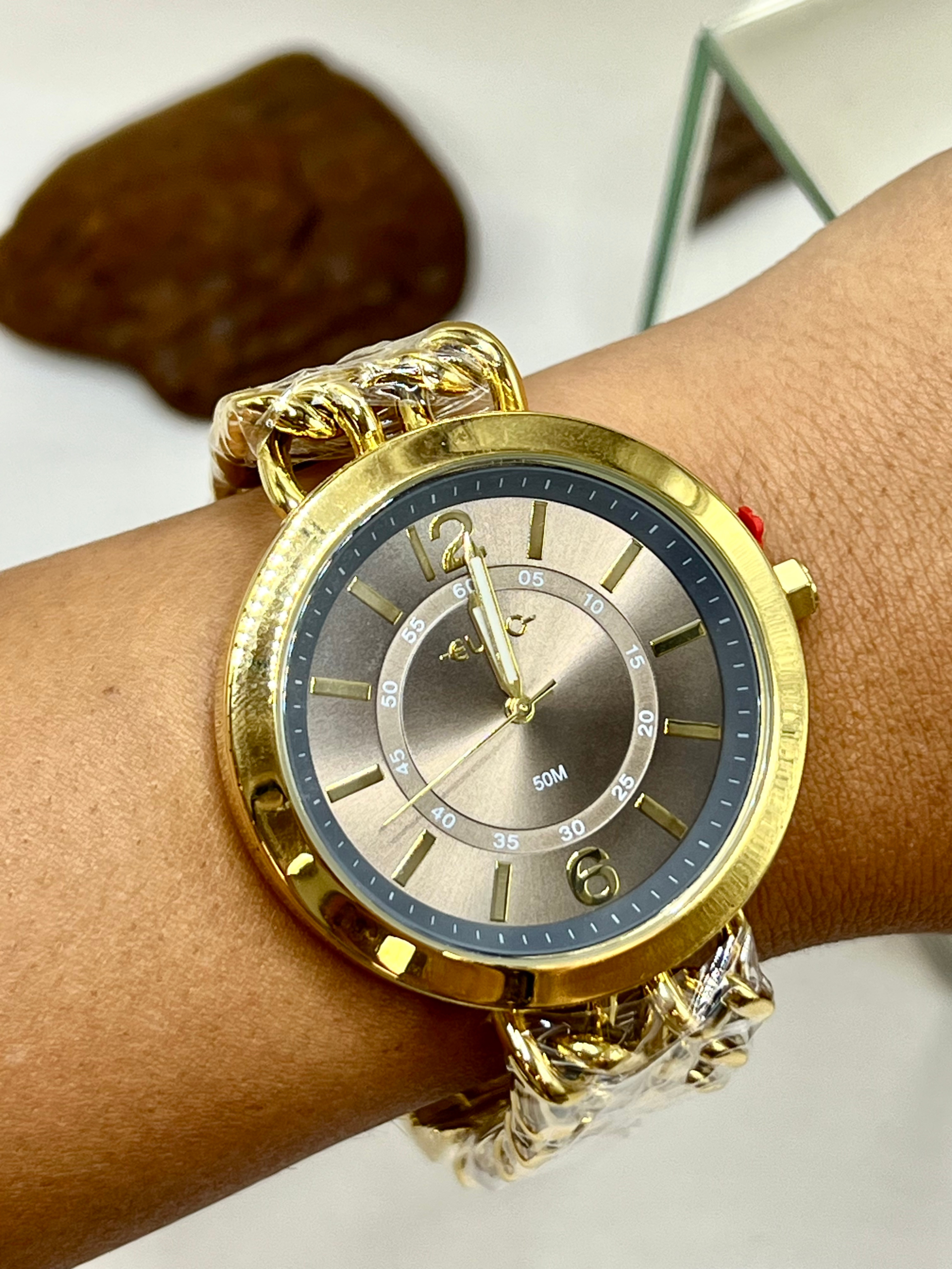 Relógio Euro Dourado Chains – Elegância Moderna em Estilo Joia