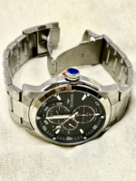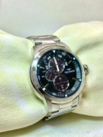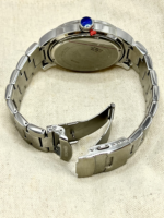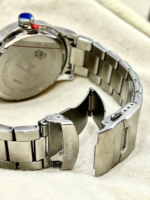 Sua caixa robusta de 48 mm em aço inoxidável prateado garante presença marcante no pulso, sendo ideal para quem aprecia relógios de maior proporção. A pulseira em aço inoxidável maciço, também na cor prata, reforça a durabilidade e o acabamento premium do modelo.