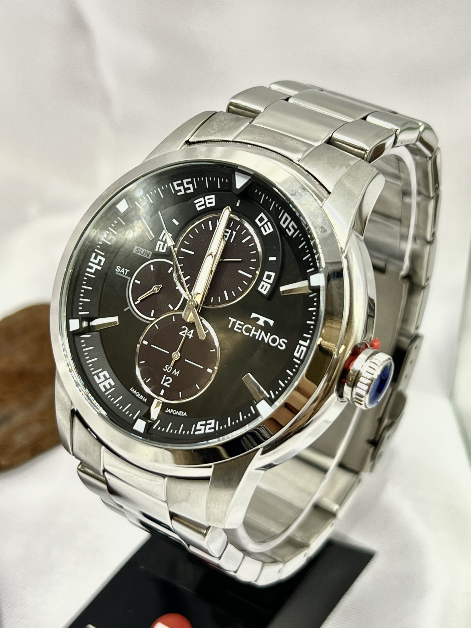 O relógio Technos Classic Grandtech prata é ideal para homens que buscam um modelo elegante, funcional e com forte presença no pulso.