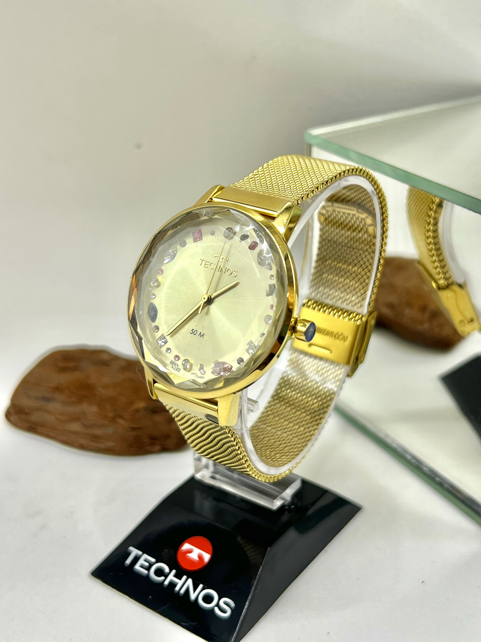 O relógio Technos Elegance Crystal dourado é a escolha ideal para quem busca um acessório feminino sofisticado, com brilho na medida certa e a qualidade reconhecida da Technos.
