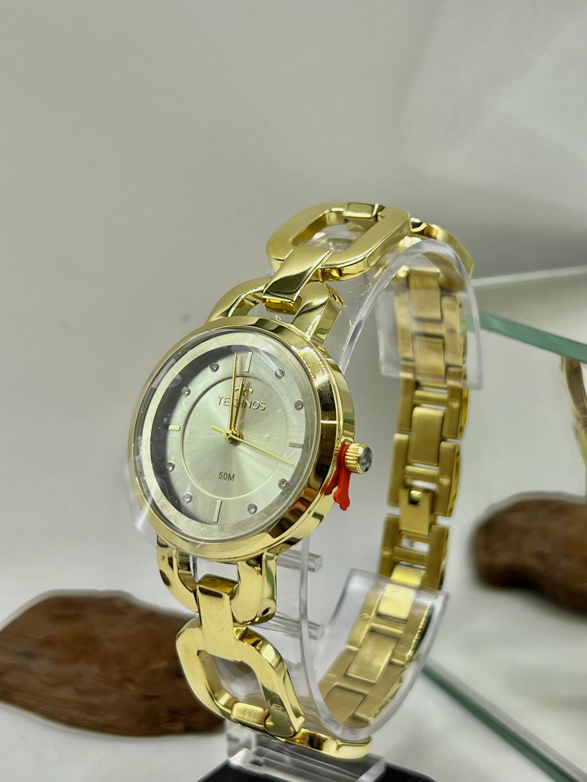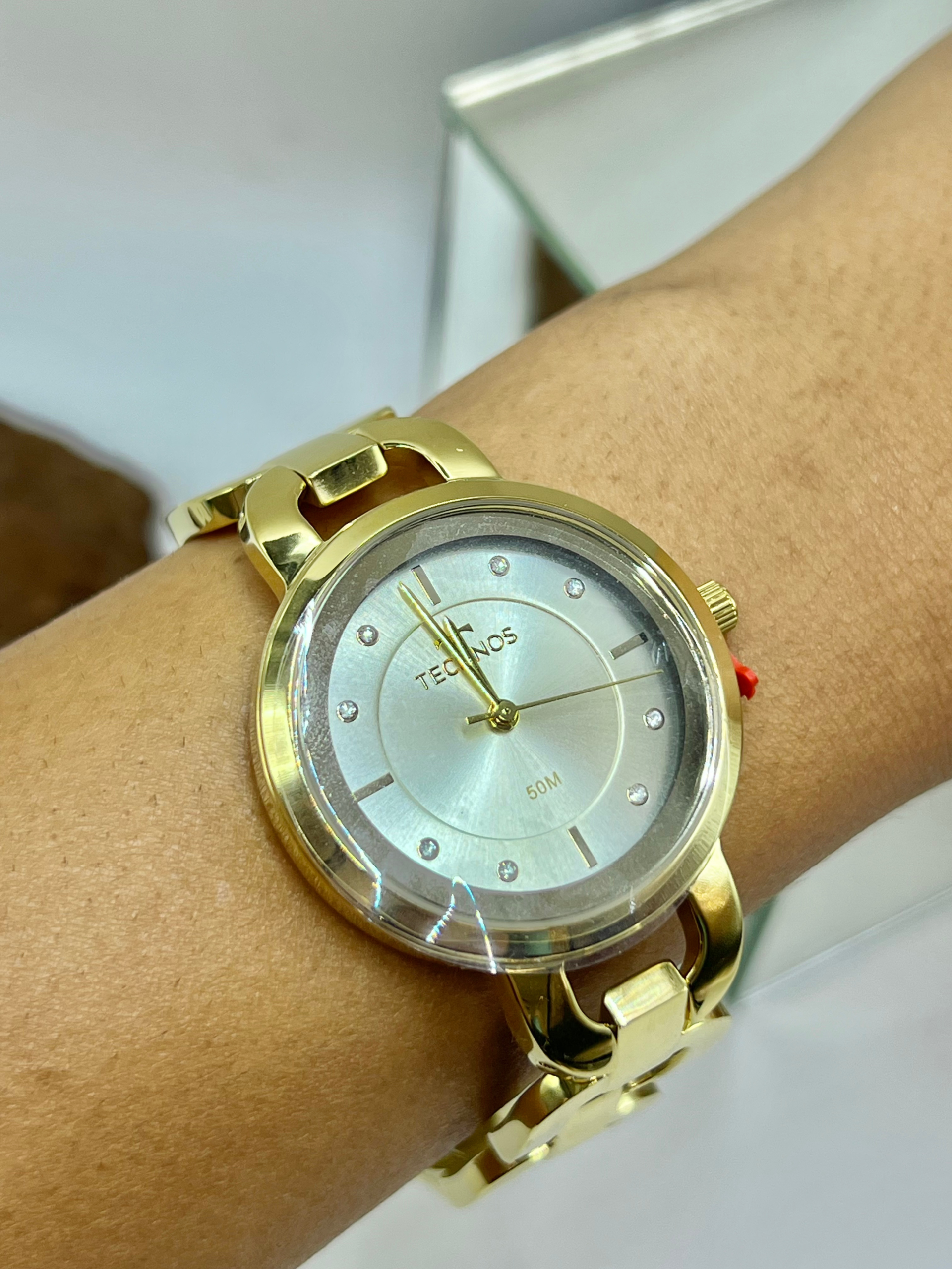 O relógio Technos Elegance Elos dourado é a escolha ideal para quem deseja um acessório feminino elegante, marcante e com acabamento que remete ao luxo discreto.
