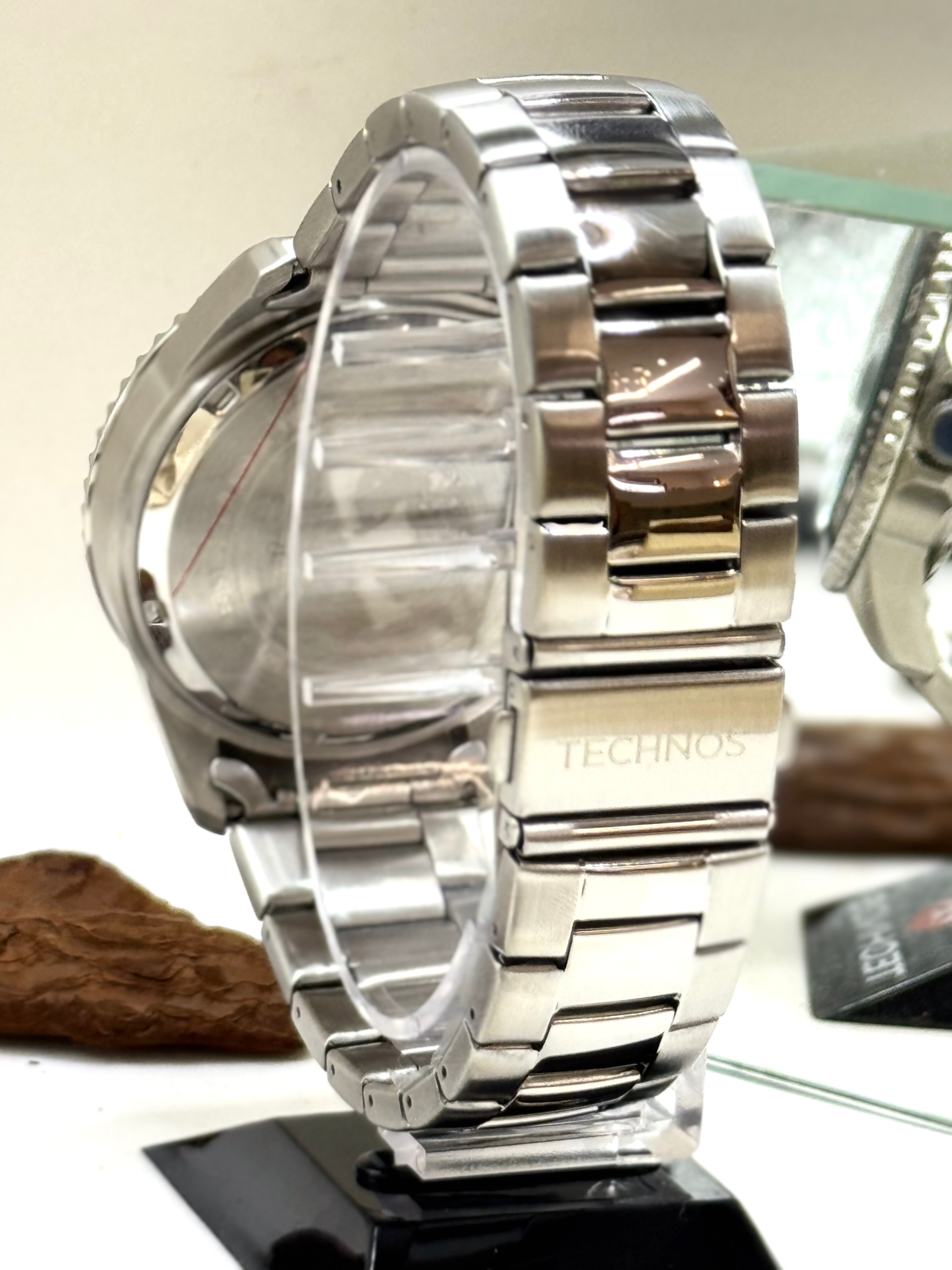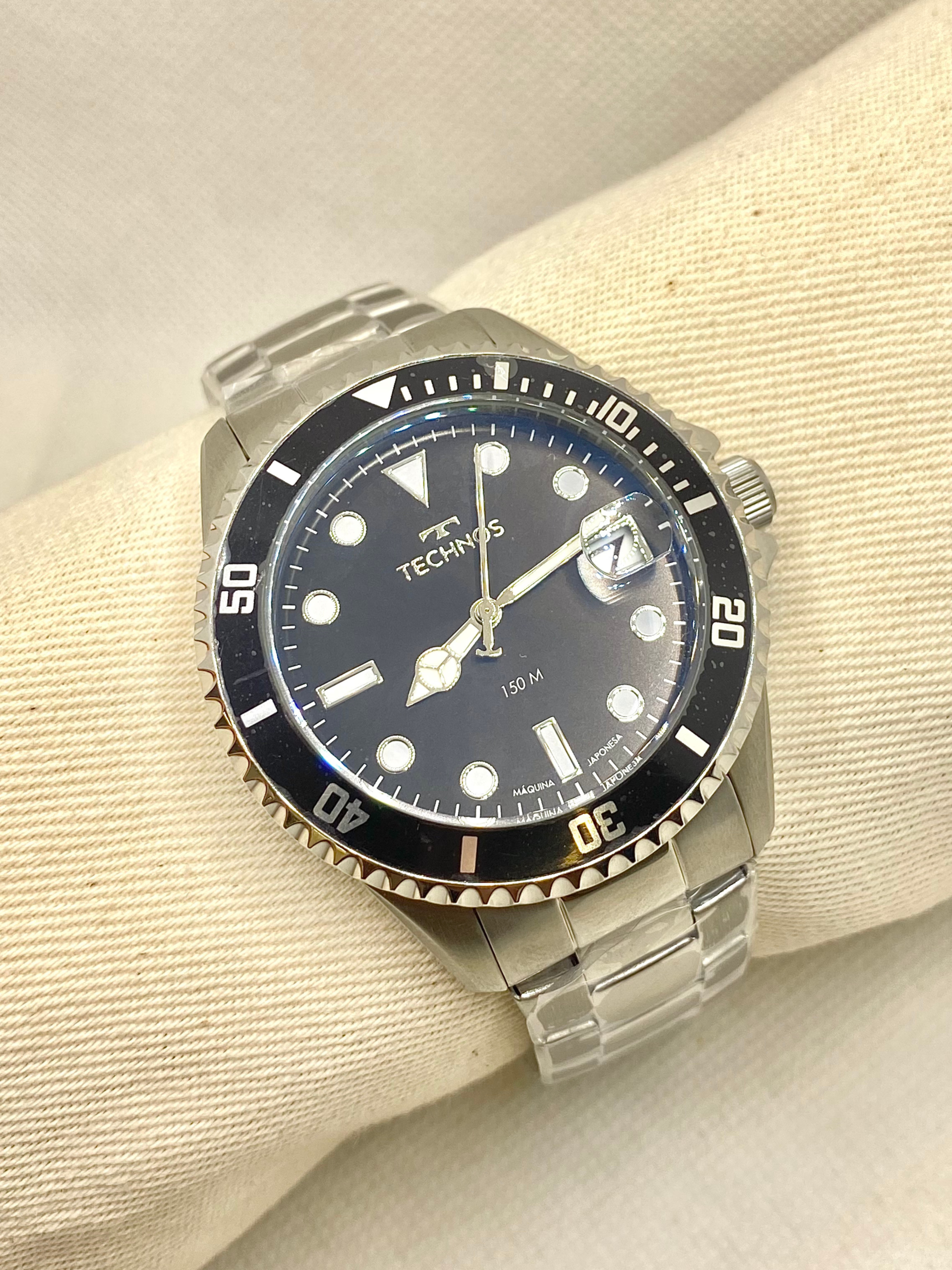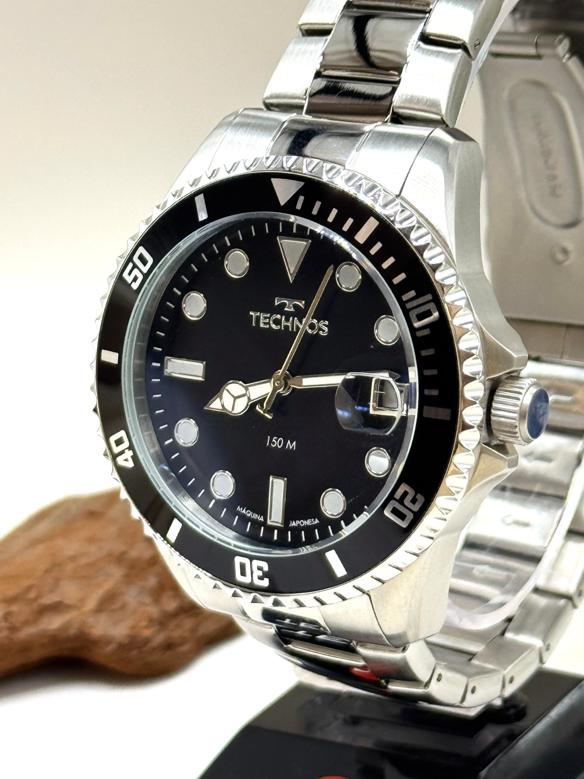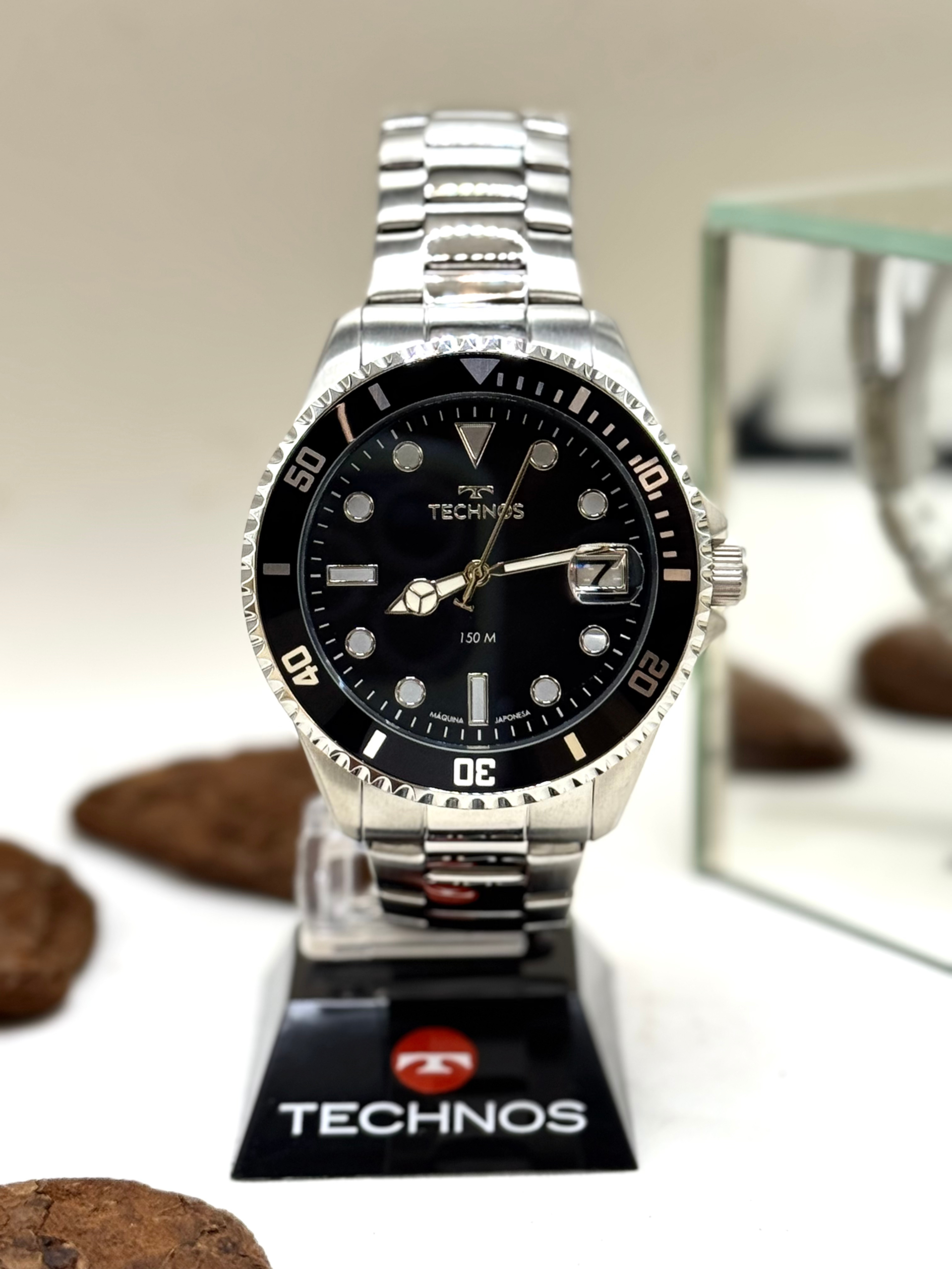 O relógio Technos Acqua prata 150m é ideal para quem procura um relógio esportivo, resistente e com estética clássica inspirada no universo do mergulho.