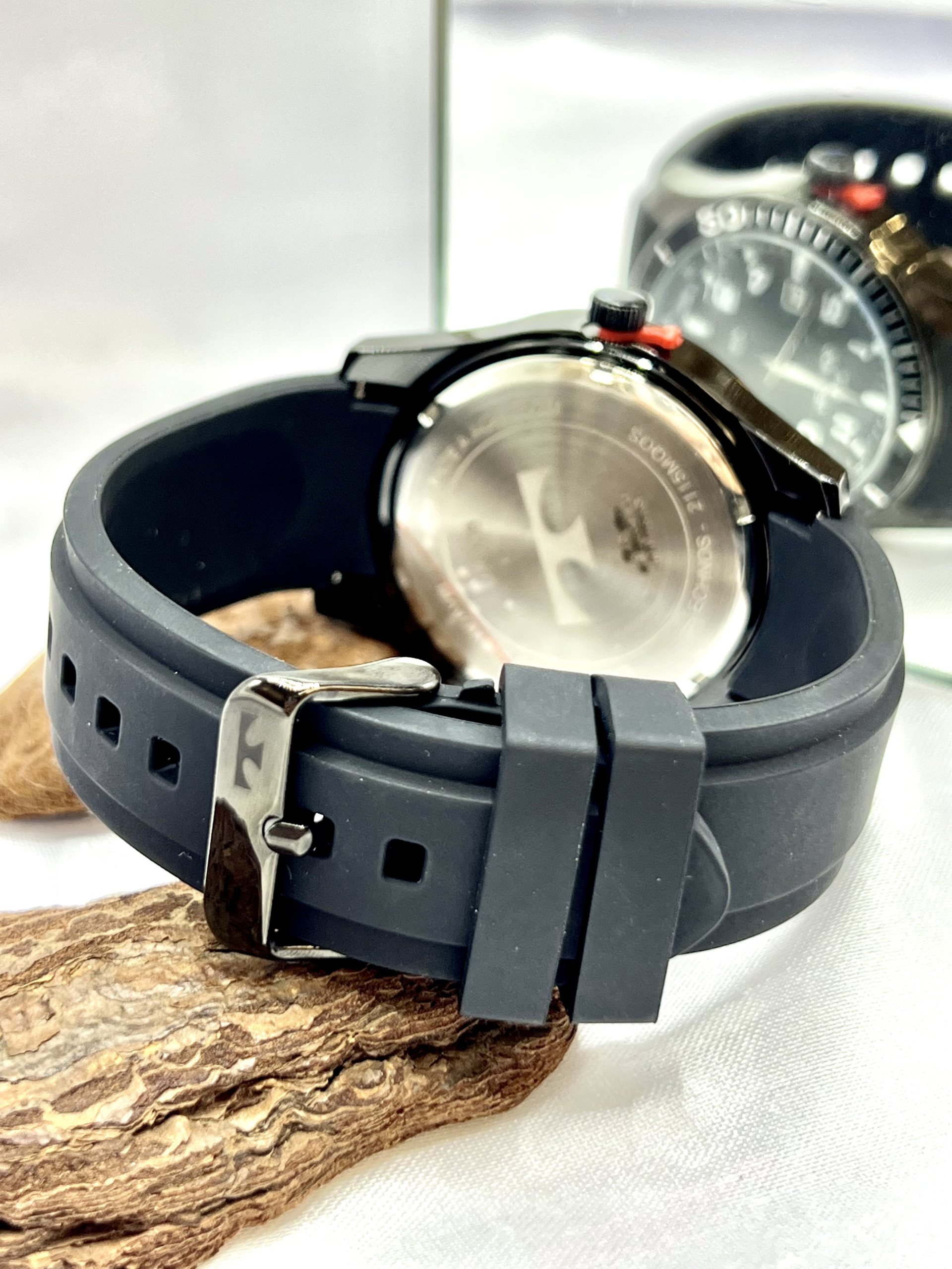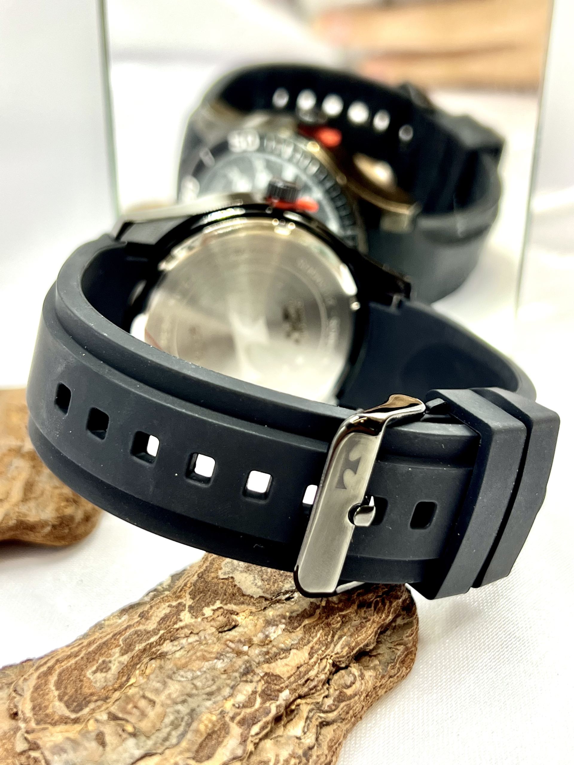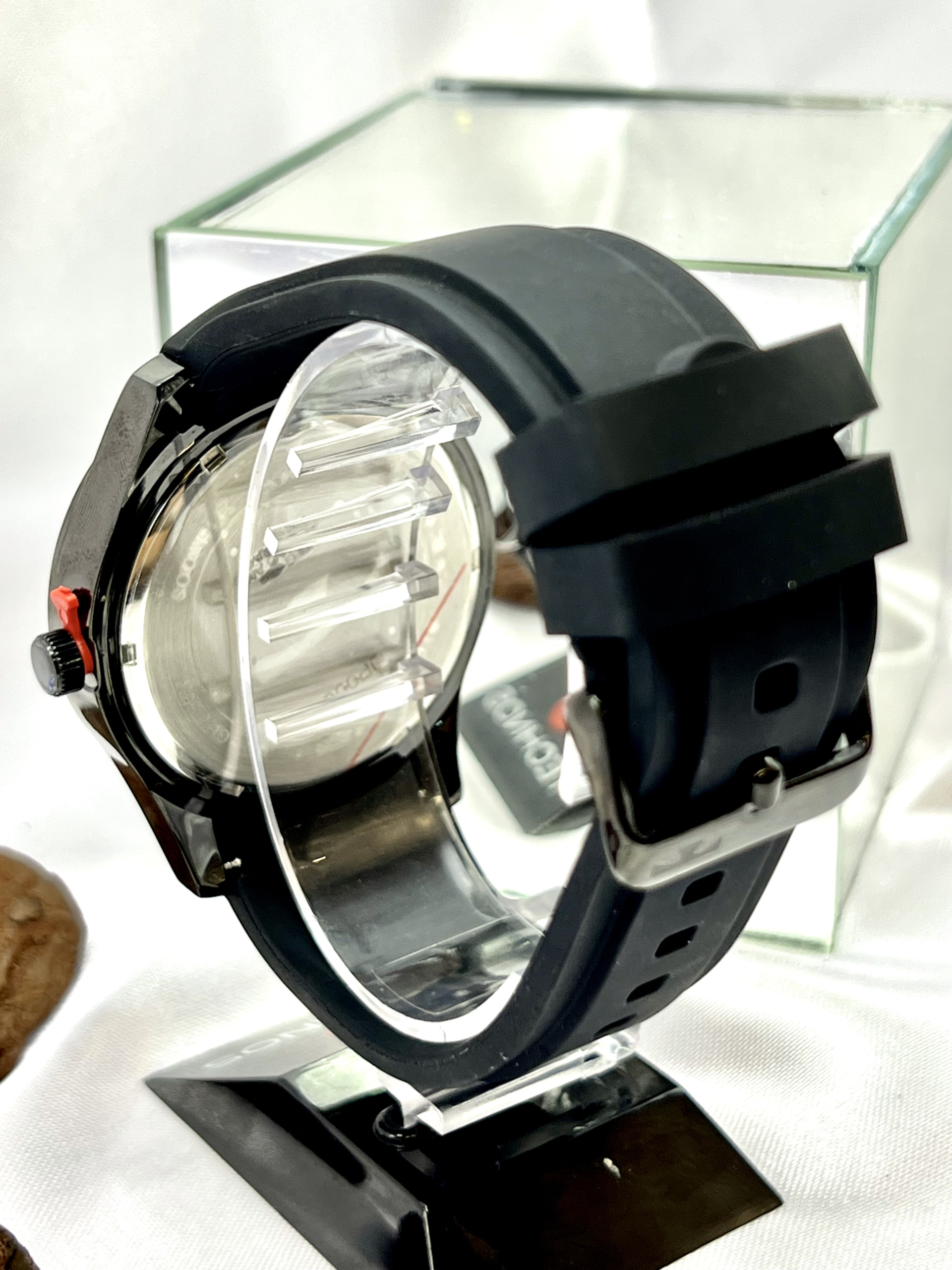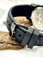 A pulseira em silicone preto garante conforto, flexibilidade e excelente ajuste ao pulso, sendo ideal para uso prolongado. O visor em cristal mineral oferece resistência contra riscos leves do dia a dia.