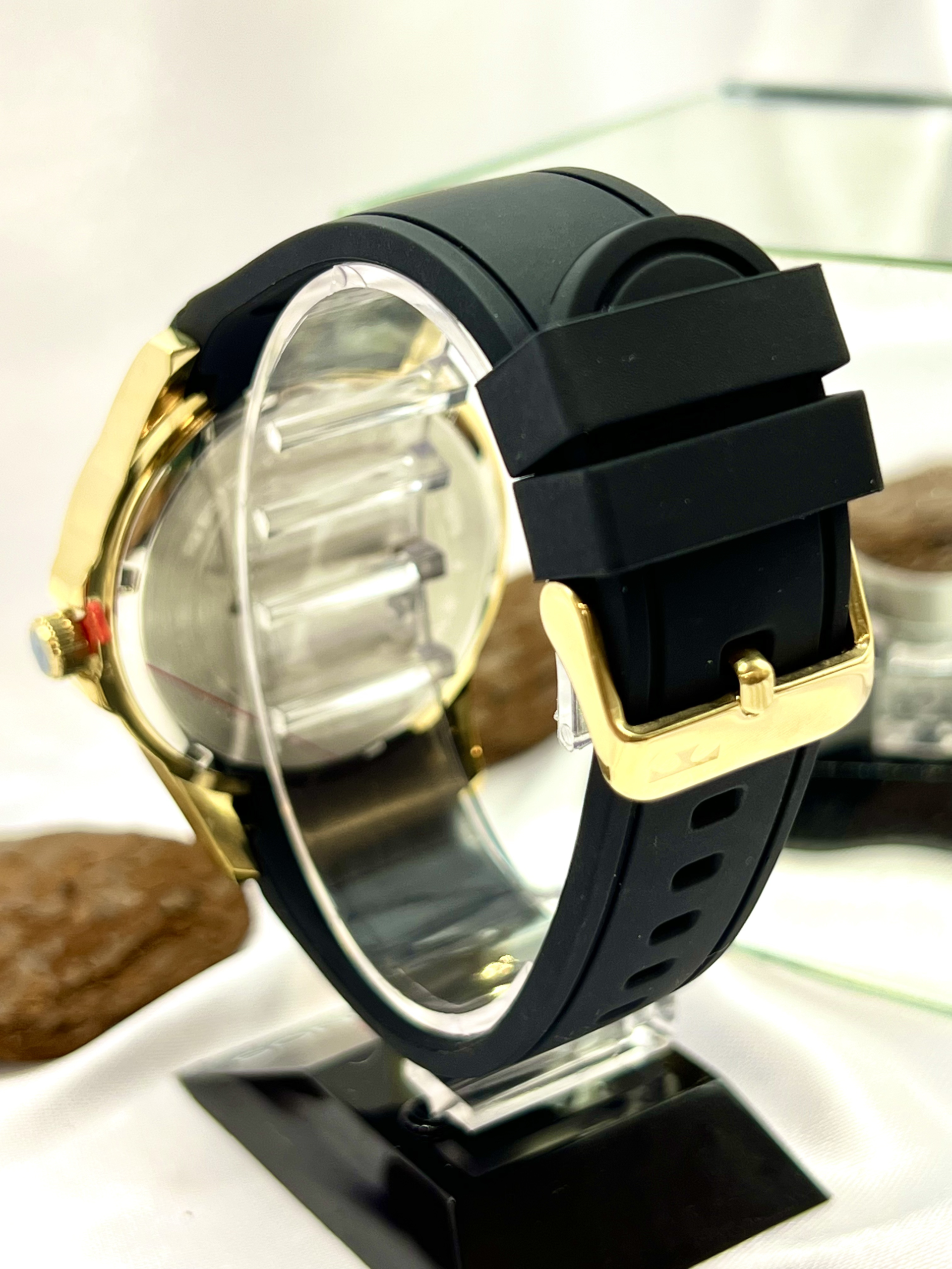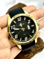 A pulseira em silicone preto proporciona conforto, resistência e excelente ajuste ao pulso, ideal para uso cotidiano. O visor em cristal mineral garante resistência contra riscos leves.