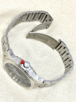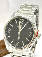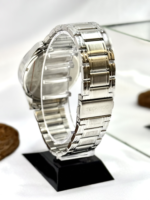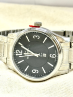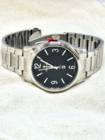 Sua caixa redonda de 42 mm, produzida em aço inoxidável prateado, oferece presença equilibrada no pulso, sem perder a sofisticação. O mostrador preto cria um contraste elegante com a caixa e pulseira prata, proporcionando excelente legibilidade.