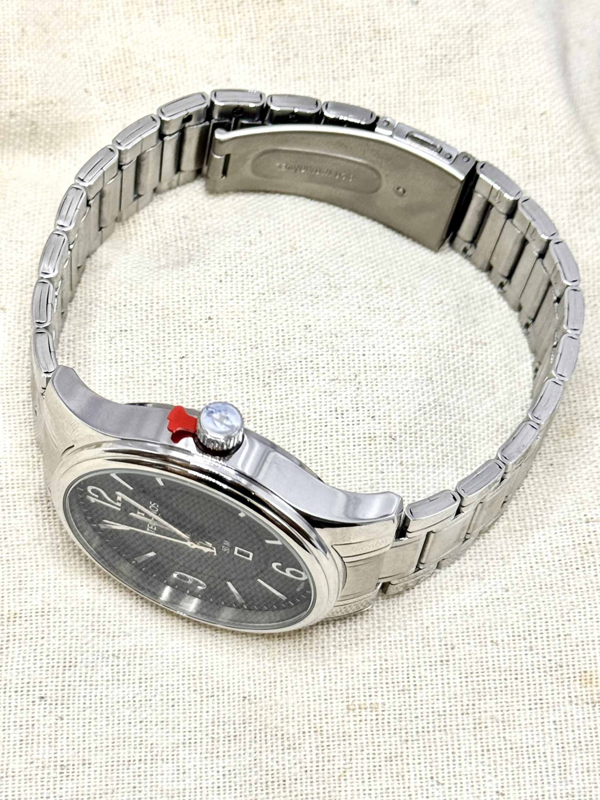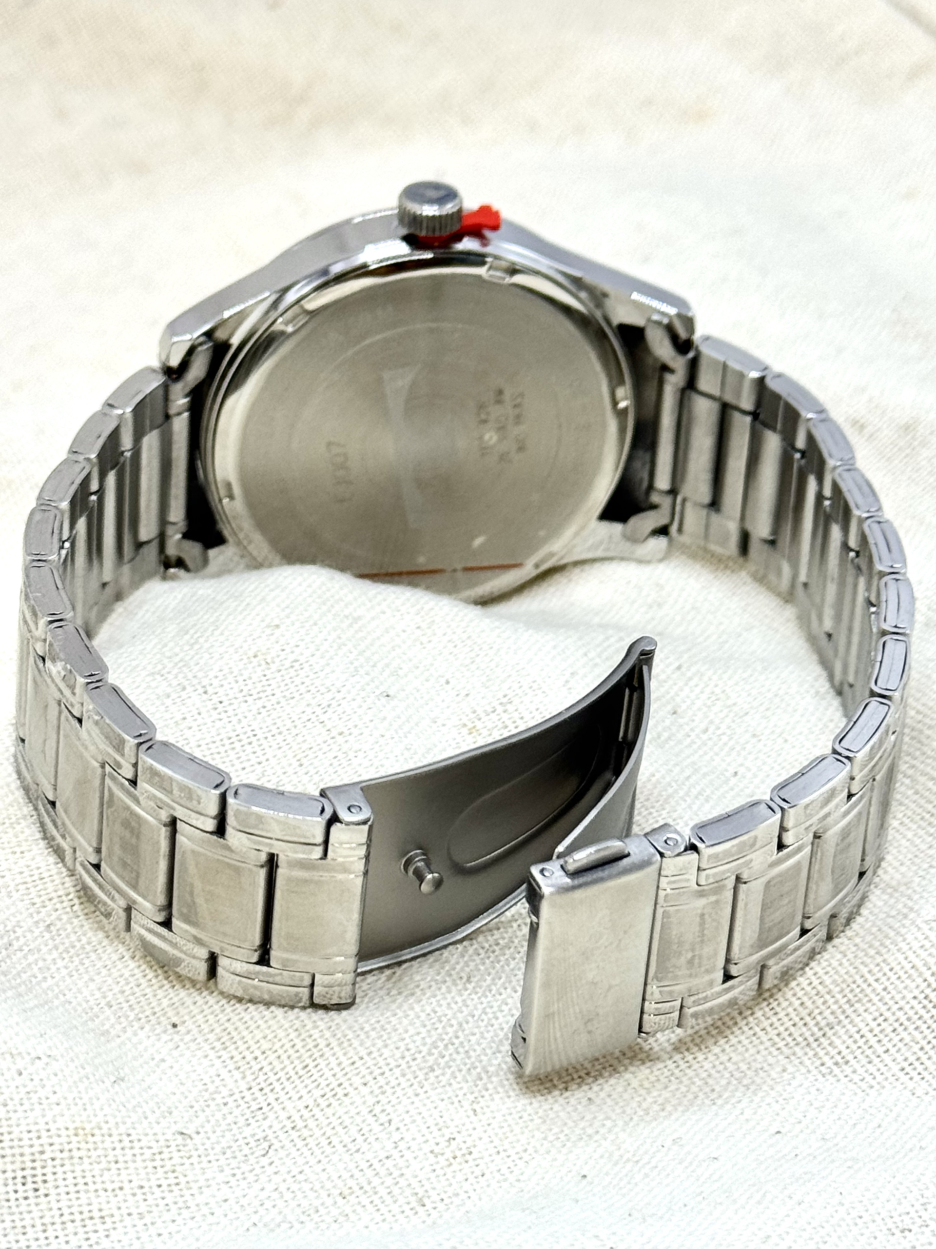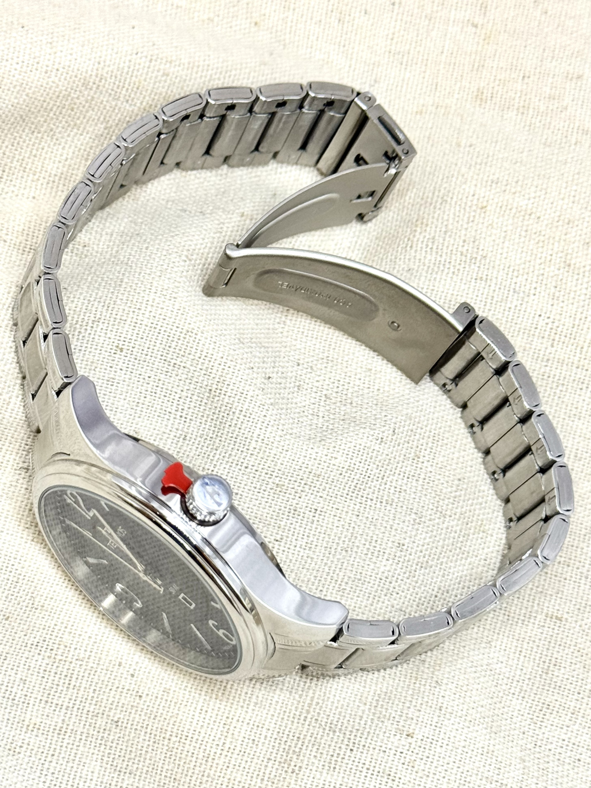 A pulseira em aço inoxidável de 22 mm, com fecho por botão lateral, proporciona segurança e conforto no uso diário. O vidro em cristal mineral protege o mostrador contra impactos leves e riscos do cotidiano.