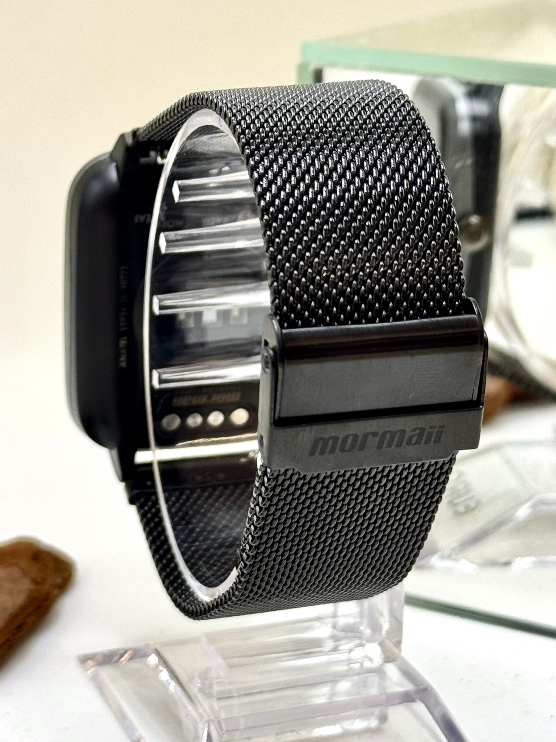 Compatível com Android 8.1+ e iOS 12+ via Bluetooth, o smartwatch Mormaii Life preto mesh é a escolha ideal para quem busca tecnologia acessível, estilo esportivo e funcionalidades completas no pulso.