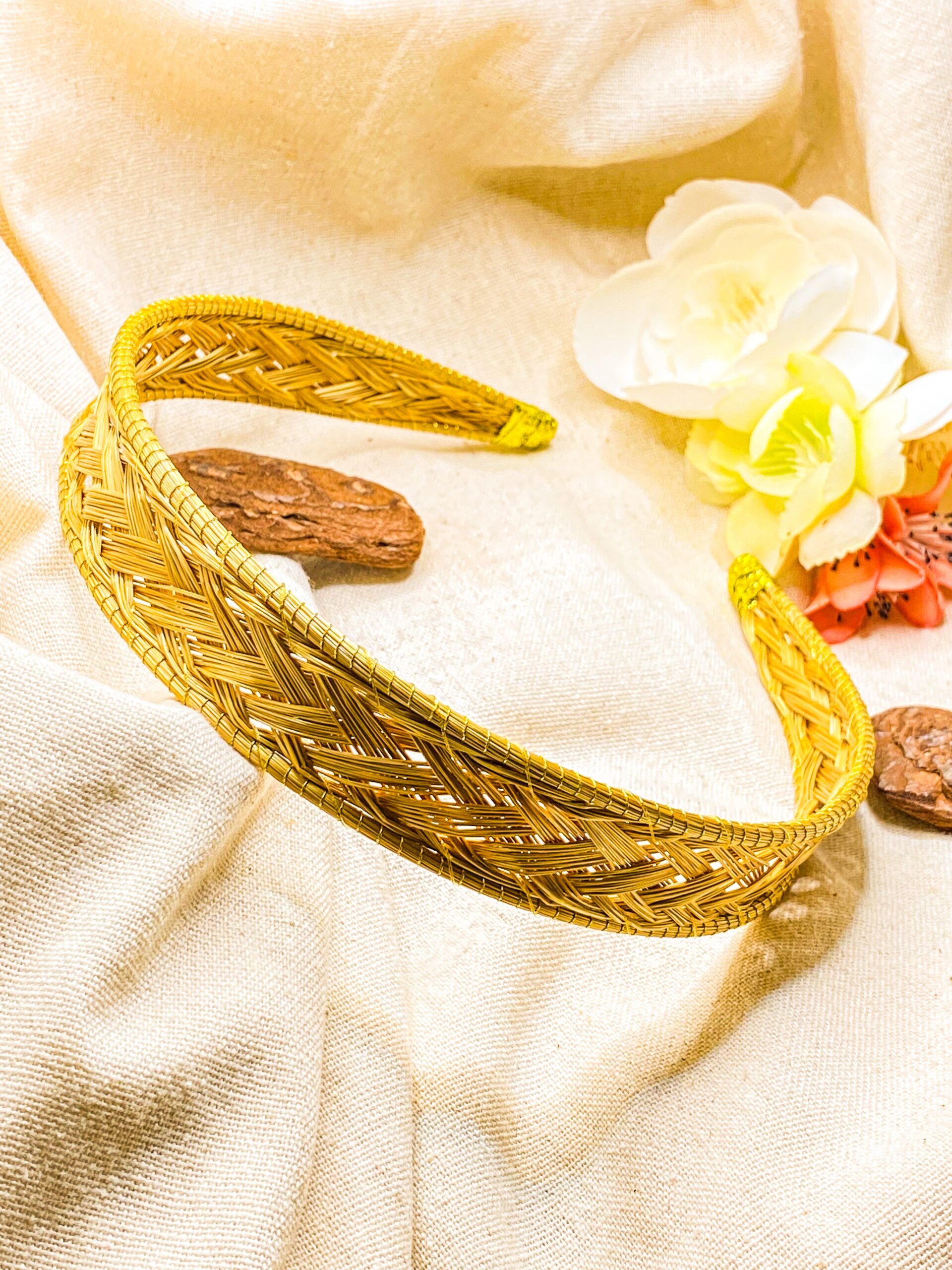 O capim dourado, conhecido como o “ouro do cerrado”, é colhido de forma sustentável nas veredas do Jalapão e trançado com maestria para criar uma peça leve, sofisticada e repleta de significado. Seu brilho natural encanta à primeira vista, tornando esta tiara perfeita para cerimônias, festas e ocasiões especiais — ou mesmo para adicionar um toque único ao dia a dia.